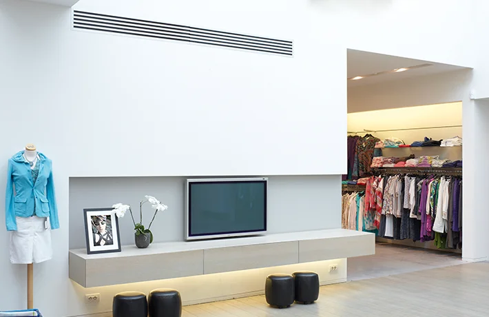 Daikin Sky Air to kompleksowe rozwiązanie klimatyzacyjne dla małych i średnich przestrzeni komercyjnych, oferujące ogrzewanie, chłodzenie, wentylację i oczyszczanie powietrza. System jest elastyczny i dostosowany do różnych zastosowań, takich jak butiki, serwerownie, biura czy restauracje.